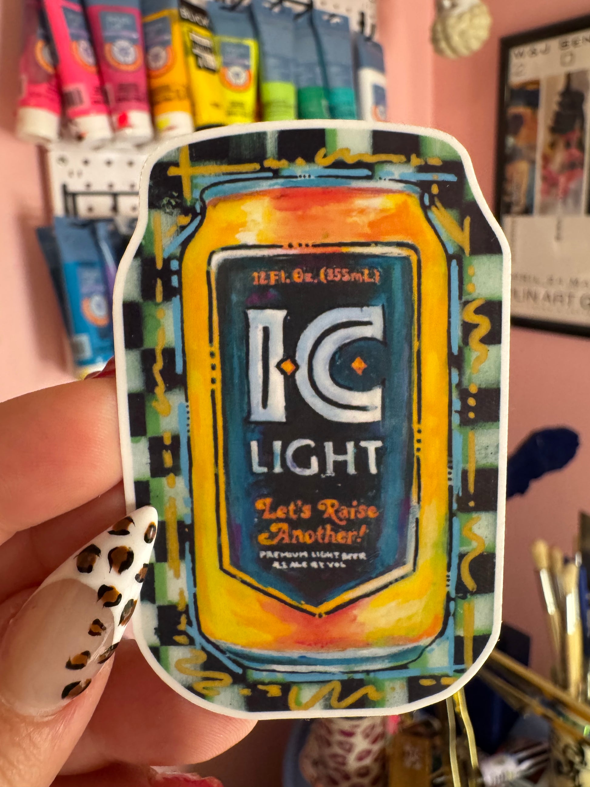 Sticker of my original mixed media (acrylic and spray paint) I.C. Light painting 🍻